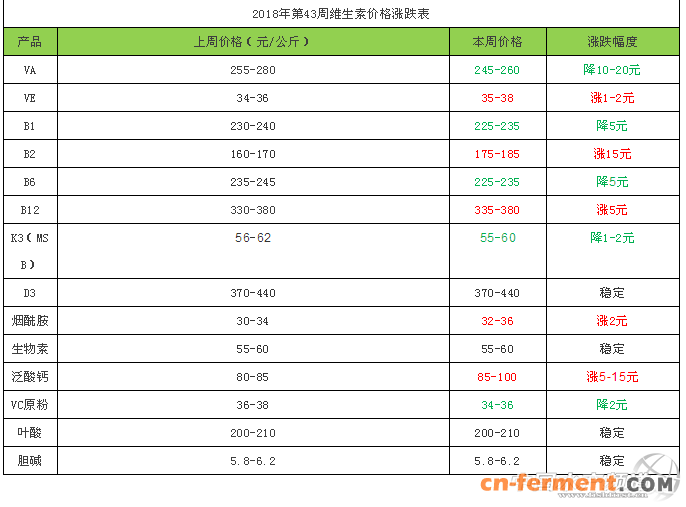泛酸钙:本周市场报价在85-100元/公斤左右,山东等地区环保严格,此前市场消息称有厂家停报现提价意愿,近期厂家发货紧张,市场库存低位,经销商报价上涨。