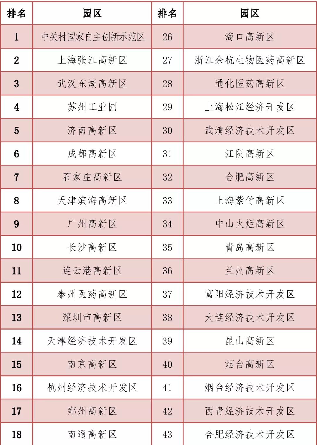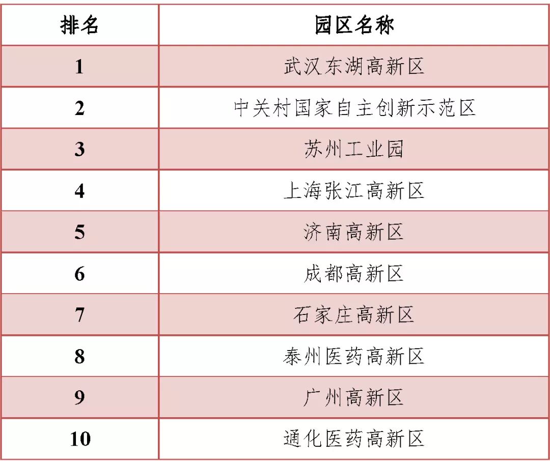 从《报告》中可以看出,中关村国家自主创新示范区、上海张江高新区、武汉东湖高新区、苏州工业园和济南高新区位列国家生物医药产业园区综合竞争力榜单前五位。中关村国家自主创新示范区的综合竞争力、产业、龙头竞争力均位列第一,领跑全国生物医药产业园区;上海张江高新区技术竞争力位列第一,产业、人才、环境和龙头实力强劲;武汉东湖高新区的人才竞争力位列第一。