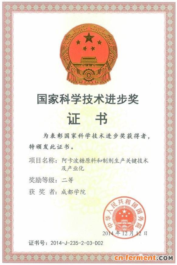 花开两朵,川抗所孕育卡博平、贝希。 1996年川抗所立项研发阿卡波糖原料和制剂,并作为主要完成单位承担了阿卡波糖产生菌的筛选、阿卡波糖制备工艺、参与药品质量标准制订、新药申报等工作。筛选得到了阿卡波糖产生菌游动放线菌E-3519,建立了阿卡波糖原料和片剂生产工艺,并成功参与申报阿卡波糖新药证书和生产批件,进而参与制定了我国第一个阿卡波糖国家药品标准[W S1-(X-315)-2004Z]、阿卡波糖片国家药品标准[W S1-(X-396)-2003Z]“阿卡波糖原料和制剂生产的关键技术及产业化”荣获国家科技进步二等奖。