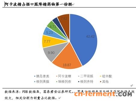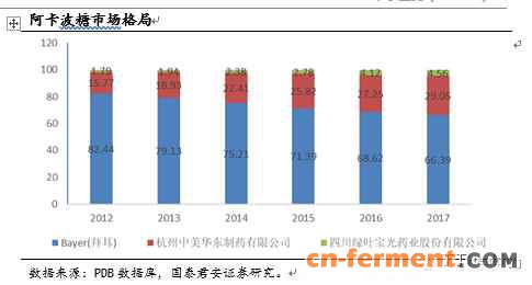举个例子大家可以直观感受下原料药门槛对于下游竞争格局的衍变,我们对比伏格列波糖就可窥一斑。机理类似的伏格列波糖,由于可以通过化学合成方式获得,且单片用量0.2mg,远低于阿卡波糖50mg,基本没有任何原料药壁垒,国内上市产品众多,竞争格局和原研推广的不给力,导致产品现在市场空间和阿卡波糖完全不是一个数量级。所以在国内环保日渐趋严和技术壁垒双重保证下,原料药的格局短期难以打破,对行业格局产生了较大的影响。