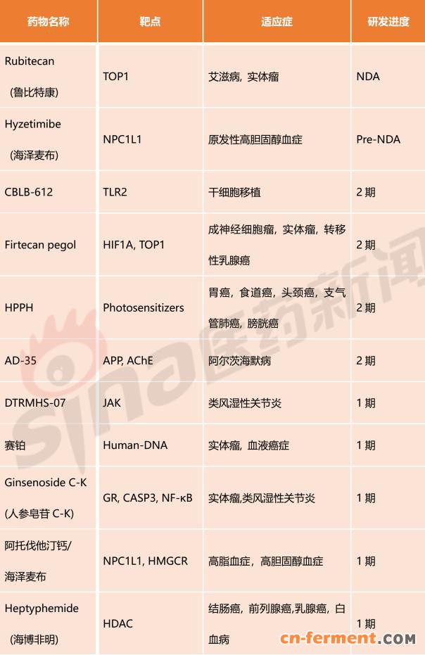 表1 海正药业创新药(化药)研发管线
