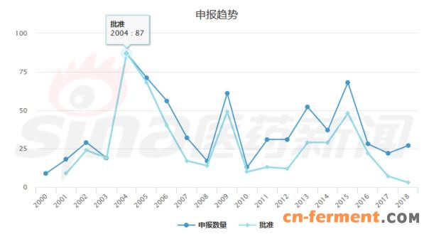 图1 海正药业近年药品申报数量(数据来源:yaozh)