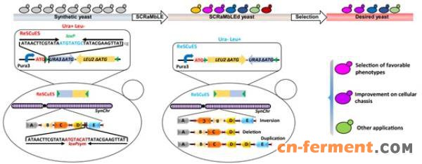 针对这一问题,戴俊彪表示," 我们先在体外用 SCRaMbLE 的办法把一条代谢通路上的基因、调控元件进行重排,再把重排后的元件插入到合成酵母的基因组里面去。" 经过这一步,实现了底盘基因组的多样化。随后,通过合适的筛选,即可获得外源代谢途径与底盘相互优化适配的高产菌株。