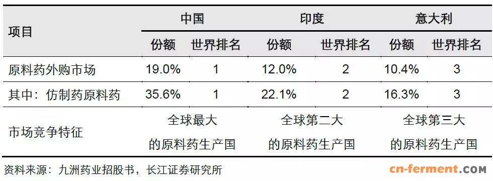 表 1:2010 年全球原料药主要生产国竞争地位