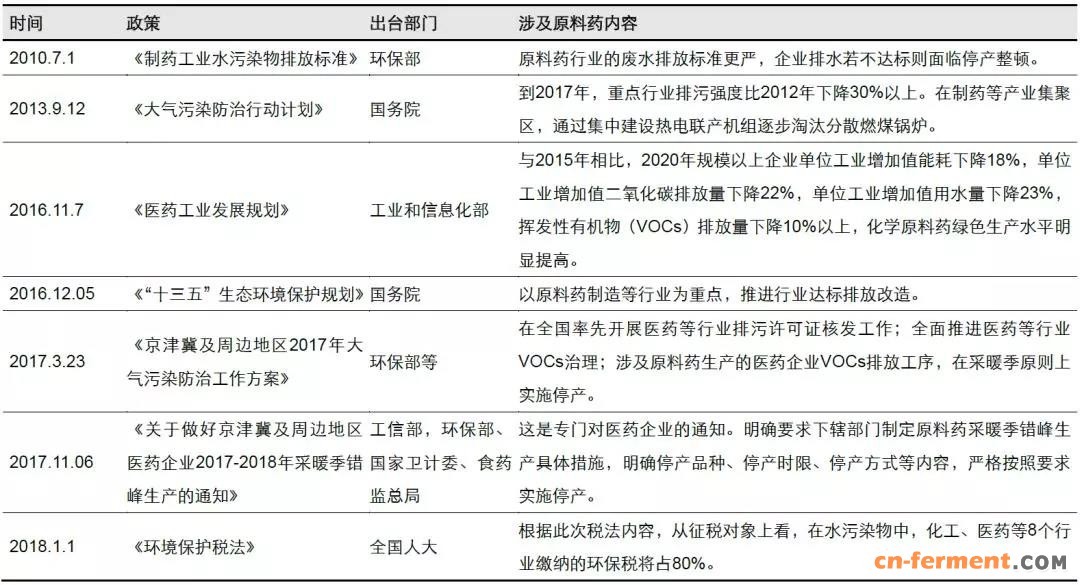 表 3:原料药产业环保趋严