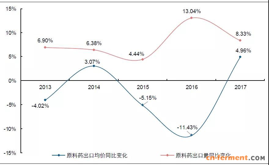 我国原料药出口金额从约 227 亿美金增长至约 291 亿美元,复合增速仅为 5.11%。