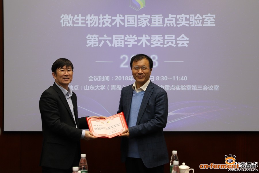 韩圣浩在致辞中介绍了学校近期在微生物技术国家重点实验室整改工作中所提供的支持与条件保障措施,肯定了实验室在人才引进和科研成果上所取得的阶段性成果,恳切希望委员们对国重室的发展思路、重点研究方向等实验室重大发展战略问题提出针对性的意见和建议,帮助实验室顺利通过整改验收,实现跨越式发展。随后,韩圣浩向新一届学术委员会委员颁发了聘书。