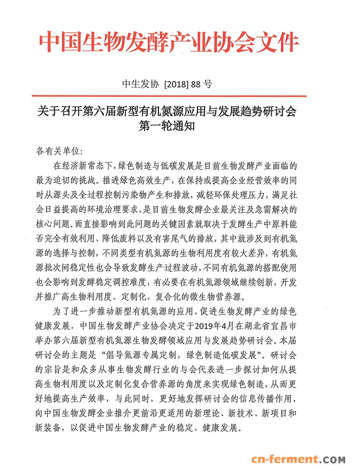 关于召开第六届新型有机氮源应用与发展趋势研讨会第一轮通知