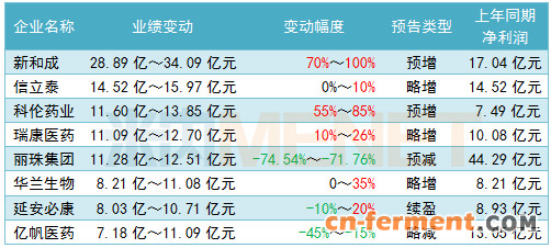 在65家业绩报喜的药企中,新和成、信立泰、科伦药业、瑞康医药、丽珠集团等8家业绩亮眼,预计净利润超10亿元。