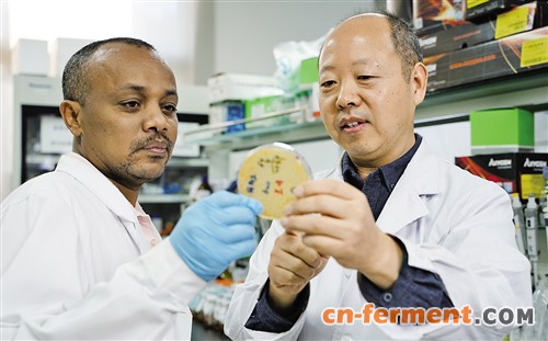 真菌学国家重点实验室的科研人员(右)在指导埃塞俄比亚留学生分离和鉴定酵母菌。 赵小平摄 (中经视觉)