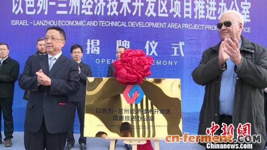 3月26日,以色列-兰州经济技术开发区项目推进办公室在兰州市安宁区揭牌。图为揭牌仪式现场。 杜萍 摄