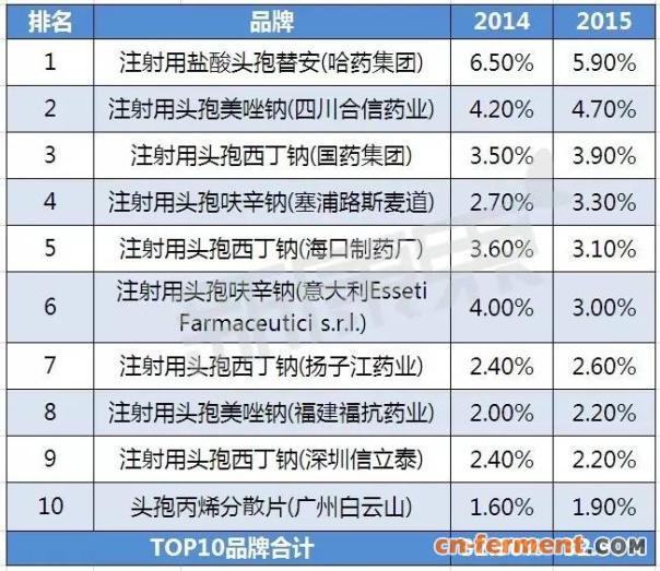 第二代头孢菌素Top10品牌