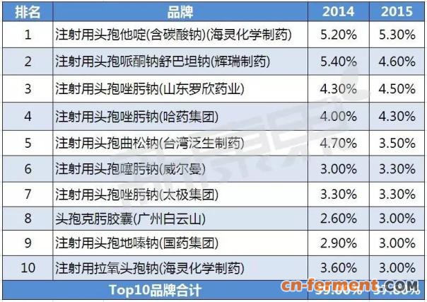 第三代头孢菌素Top10品牌