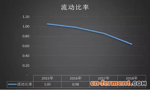 不仅如此,海正药业的金融负债还面临着短债增加、长债减少的现象。近年来,随着长期借款和应付债券的逐步偿还,长期债务规模有所下降,而短期借款大幅增加。从流动比率这一指标也可以明显的看出。