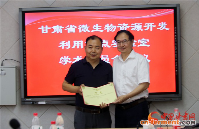 中国甘肃网7月27日讯(本网记者 宋芳科 文/图)7月27日,甘肃省微生物资源开发利用重点实验室学术委员会会议在甘肃省科学院召开。会上,甘肃省科技厅副厅长傅小锋为中国科学院院士、著名微生物学家邓子新颁发聘书,聘请邓子新院士为甘肃省微生物资源开发利用重点实验室学术委员会主任。这标志着甘肃引智院士团队,加快微生物科技研发,服务地方经济迈出新步伐。
