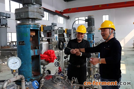 张晓东总经理与刘喜华副总经理把菌种投入发酵一级种子罐
