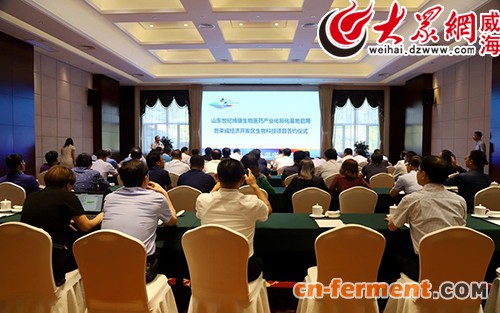 张校林、万融资本合伙人谭继元、中国科学院微生物研究所研究员刘宏伟分别致辞,张宗涛介绍了开发区投资环境及荣成市科技创业园基本情况,山东世纪博康生物医药产业化孵化基地有限公司董事长郝守祝先生介绍了生物医药产业化孵化基地的功能及运营模式。