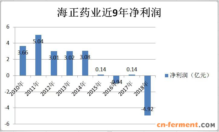 2015-2018年,海正药业的净利润分别为0.14亿元、-0.94亿元、0.14亿元、-4.92亿元。特别是2018年,海正药业的净利润同比减少了3730.15%,扣非净利润更是亏损达到6.12亿元。