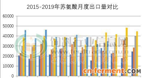 据海关数据统计,2019年9月,我国出口苏氨酸产品3.5万吨,环比增长,同比下降20%。2019年1-9月我国共出口苏氨酸35.3万吨,同比增长5.6%。2019年9月我国苏氨酸出口平均价格为1414.1美元/吨,同比环比均略降。2019年1-9月我国对欧亚非等地区出口量保持高位,其中对俄罗斯、比利时、泰国、菲律宾、墨西哥、巴西、印度等欧亚非及南美国家出口量大,同比保持高增长。2019年1-9月我国对国家出口量前三名为比利时、美国、巴西,出口量分别为3.35万吨、3.31万吨以及2.99万吨。