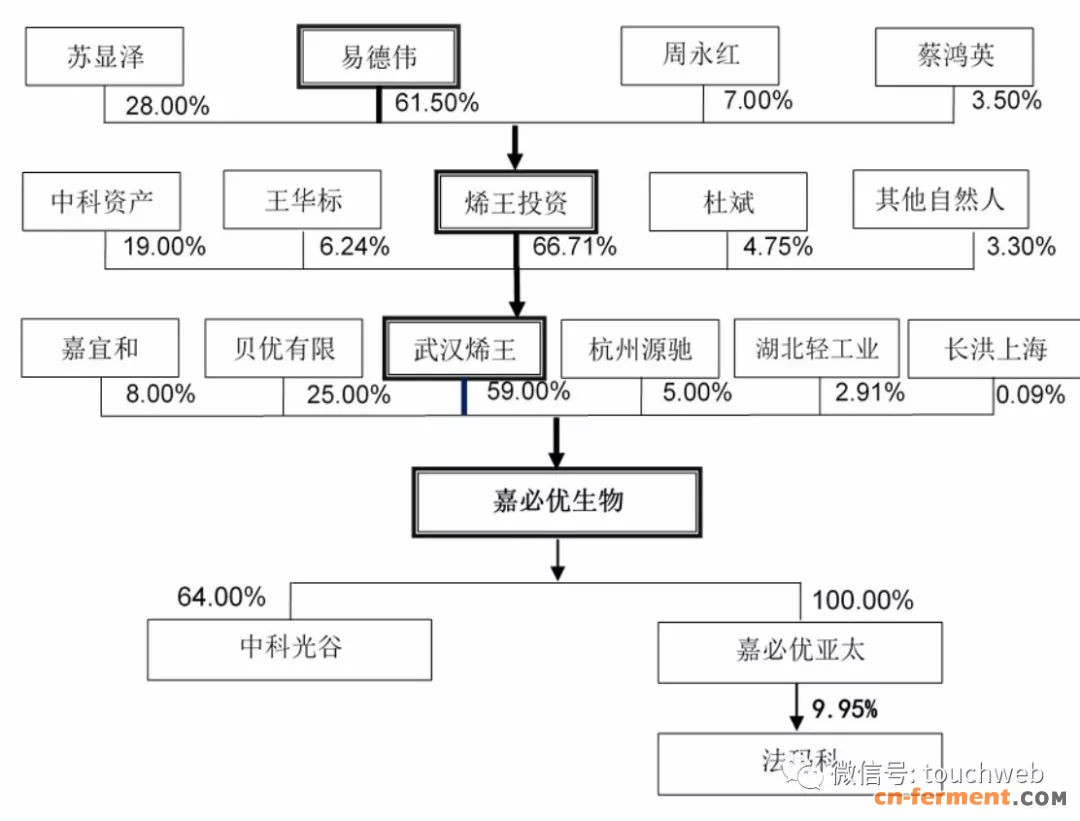 IPO前,易德伟持有烯王投资61.50%的股权,烯王投资持有武汉烯王66.71%的股权,武汉烯王持有公司59.00%的股份;