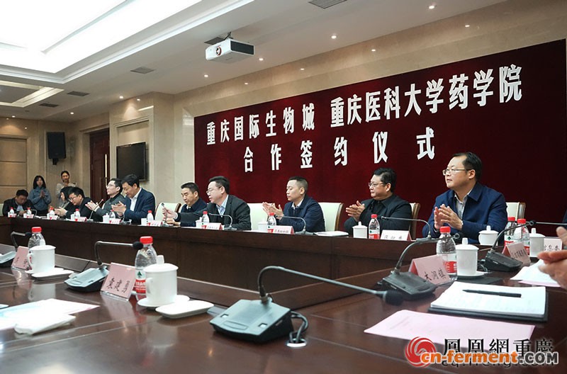 重庆医科大学党委书记刘宴兵,巴南区委书记辛国荣,区委副书记、区长何友生出席签约仪式。重庆国际生物城开发投资有限公司执行董事、总经理李锐,重庆医科大学药学院院长于超代表双方签订战略合作协议。巴南区政府副区长杨亚平主持签约。
