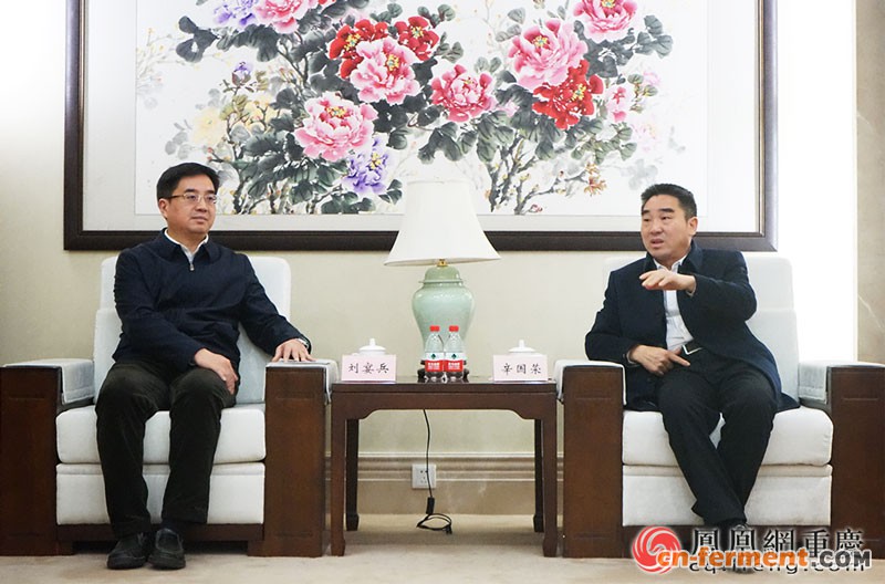 签约仪式开始前,重庆医科大学党委书记刘宴兵与巴南区委书记辛国荣进行座谈