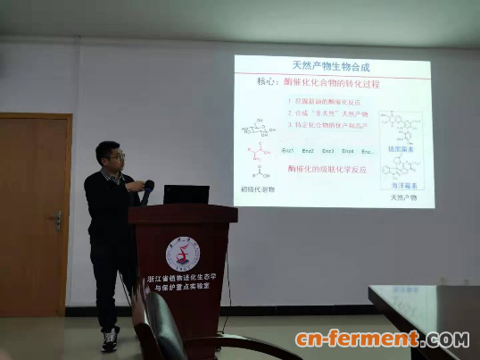 在“微生物生物碱生物合成”报告中,林双君教授深入浅出地介绍了其课题组在微生物生物碱的生物合成领域开展的一些开创性的工作,通过克隆一系列含有b-甲基色氨酸的吲哚生物碱如抗肿瘤药物链黑菌素、淡紫醌霉素、Maremycin、FR-900452等的生物合成基因簇,进一步通过体外酶学和结构生物学技术阐明了(2S, 3S)- 和 (2S, 3R)- b-甲基色氨酸立体选择性生物合成的酶催化反应机制、b-咔啉生物碱的酶催化合成机制、2-氧吲哚单元的酶催化合成机制等。同时结合新发现特性及酶催化反应,通过生物合成途径组装,获得了一系列链黑菌素的高活性低毒性的衍生物,为理论研究到应用提供了新思路。
