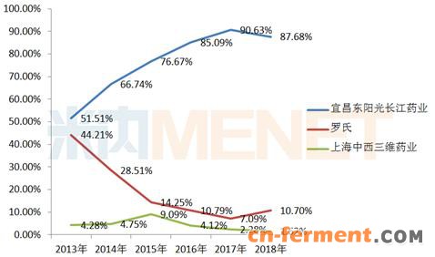 奥司他韦“攻占”国内流感药市场还得从另一场席卷全球的疫情说起。2005年,H5N1型疫情全球暴发,在全球政府订单暴增的情况下,罗氏放开专利授权扩充产能,中国有宜昌长江药业(东阳光药子公司)和上海中西三维(上海医药(18.780, 0.27, 1.46%)子公司)获得罗氏的奥司他韦专利授权,允许在中国生产销售。国内奥司他韦市场形成了“三分天下”的局面。