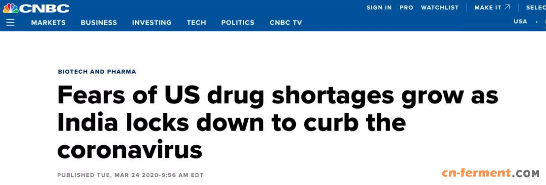 据美国CNBC网站3月24日报道,印度采取措施控制新冠病毒传播,对美国药品短缺的担忧加剧。