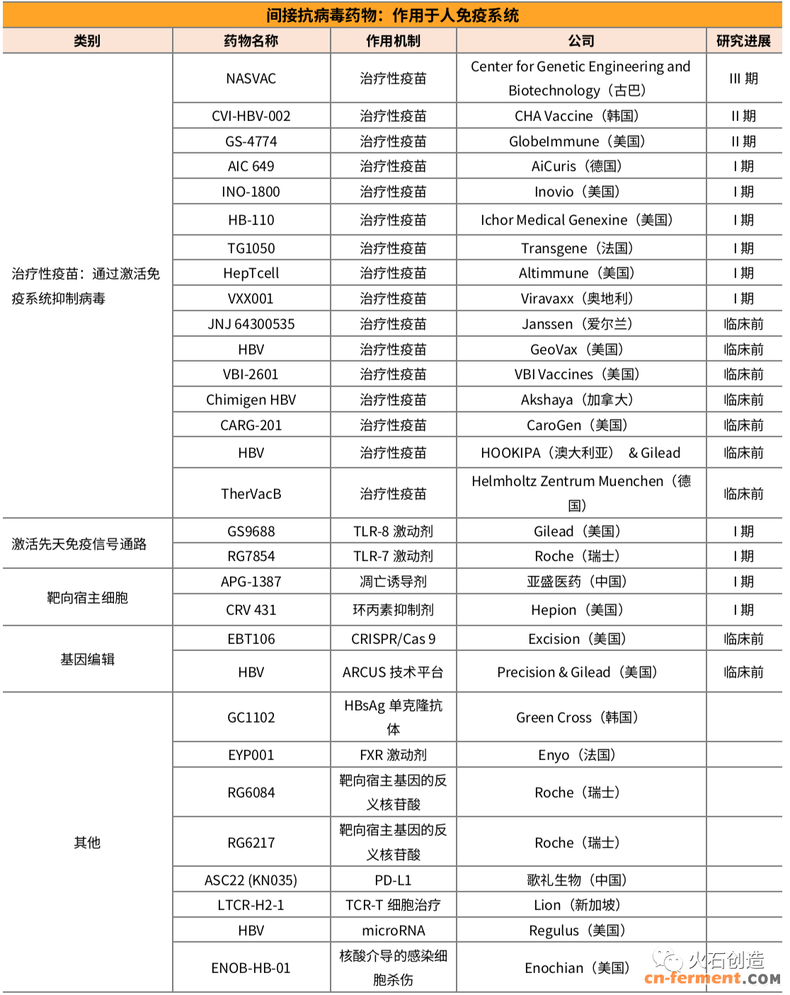 表2-2 全球乙肝新药研究进展