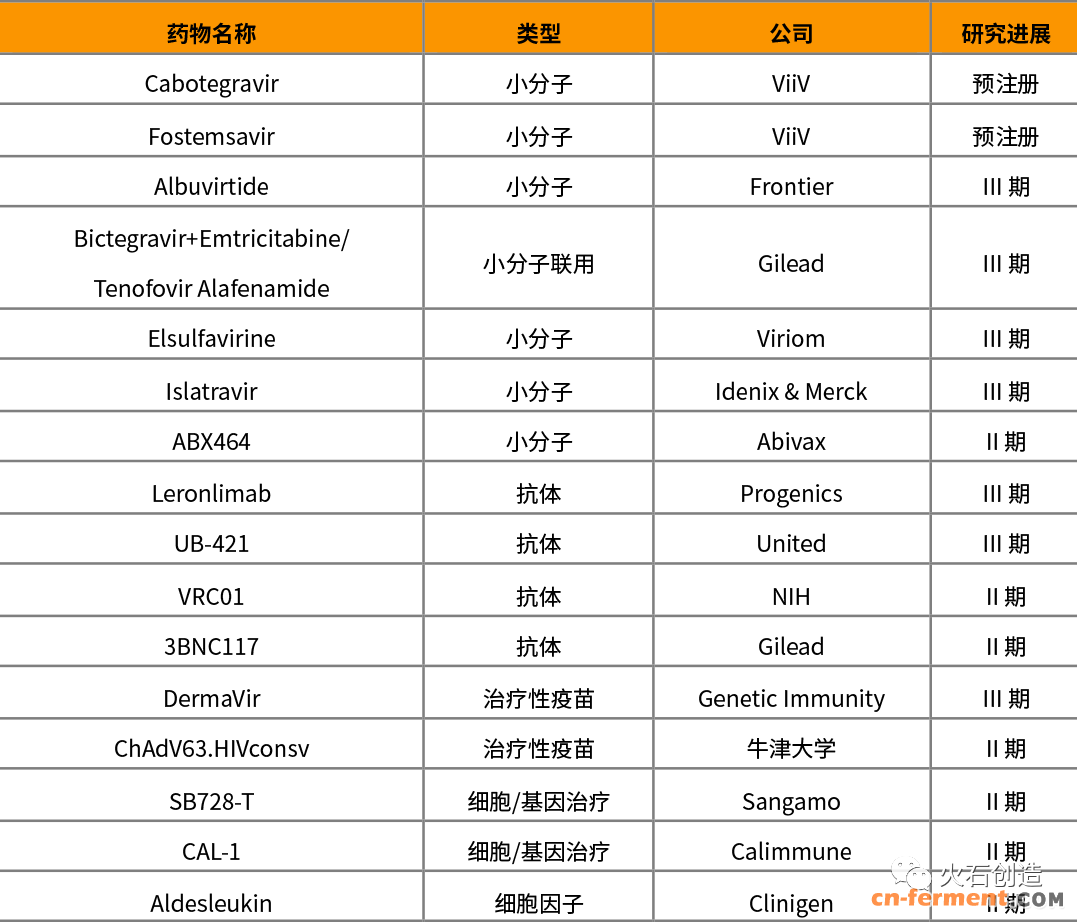 多种中和HIV或阻断HIV进入细胞的抗体药物也在试验中,如UB-421和PGT-121等,大分子药物更长的半衰期使其更适合用作长期治疗方案。