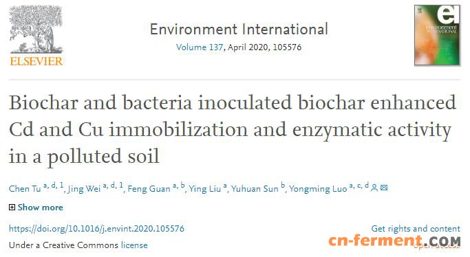 中国科学院烟台海岸带研究所骆永明研究员团队以玉米秸秆型生物炭和重金属(Cu、Cd)耐性细菌 Pseudomonas sp. NT-2为材料,通过75天的盆栽实验,采用重金属形态的Tessier连续提取法分析和植物、微生物及人体等多受体生物有效性分析,并结合土壤酶活性分析和基于16S rRNA基因的高通量测序分析,系统阐明了生物炭负载微生物菌剂对Cd、Cu污染土壤的稳定化修复效果与作用机制。