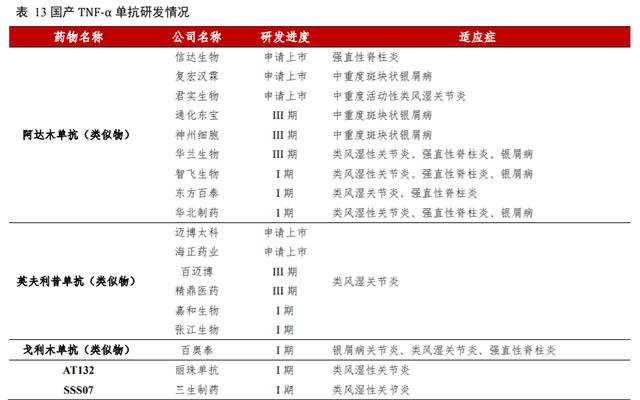 4.4 TNF-α 单抗:类似物对原研冲击较大,国产即将进入激烈竞争阶段