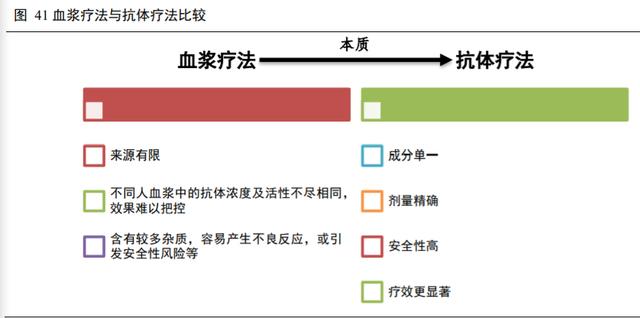 血浆疗法看似天然,实际上不确定因素很多。如治疗性血浆来源有限;不同人血浆中的抗体浓度及活性不尽相同,效果难以把控;除有用抗体外,血浆中也含有较多杂质,容易产生不良反应,或引发安全性风险等。相对而言,成分单一、剂量精准的抗体药物比血浆的安全性更高,疗效更显著。单抗药物最为常用,针对新冠病毒肺炎,单抗药物的研发已在全球积极开展。
