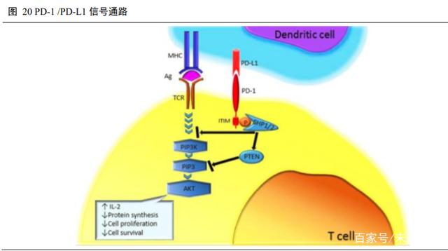 PD-1(programmed cell death protein 1,程序性死亡受体 1)是 CD28 受体家族的一员,属于Ⅰ型跨膜糖蛋白,由胞外结构域、跨膜结构域和胞内结构域组成,主要在活化的 T 细胞表面上正常表达。PD-1 结合两个配体,分别是 PD-L1 和 PD-L2,主要表达于巨噬细胞和树突状细胞。PD-L1 是 PD-1 的主要配体,也属于Ⅰ型跨膜糖蛋白。