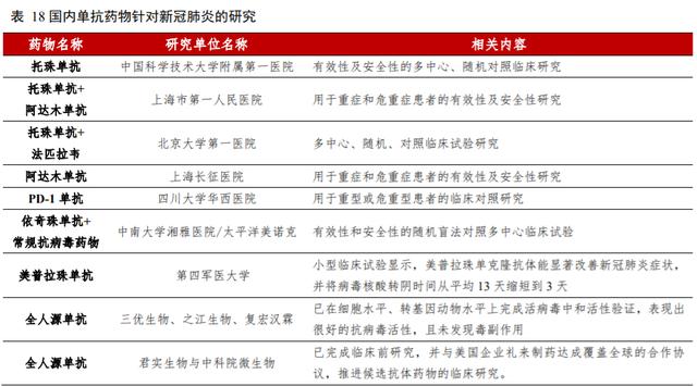 5.新冠肺炎药物研发积极开展,托珠单抗已被广泛使用