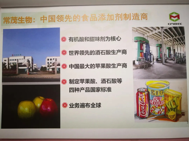 常茂生物化学工程股份有限公司以有机酸和甜味剂为核心产品,是目前我国领先的食品添加剂制造商、世界领先的酒石酸生产商、中国最大的苹果酸生产商,参与制定了四个品种产品的国家标准。因江苏省政府对于沿江1公里化工企业限期退搬要求,目前,常茂生物正在积极寻找新的精细化工园区投资设厂。