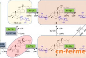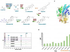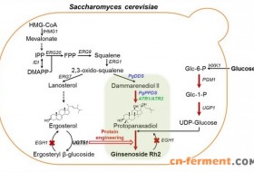 通过系统强化细胞内UDP-glucose的合成途径及弱化细胞内UDP-glucose的消耗途径,强化了PPD高产酵母底盘的UDP-glucose供给水平。利用该酵母底盘细胞,将CK的产量提高到5.7 g/L,达到了经济可行水平。