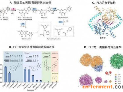 黄芩素(Baicalein)和野黄芩素(Scutellarein)是结构相似的两种不同的黄酮类化合物,前者主要从唇形科多年生草本中药植物黄芩(Scutellariabaicalensis Georgi)的干燥根中提取获得,而后者主要存在于菊科植物灯盏花(Erigeron karvinskianus)中。这两种化合物均具有广泛的药理学活性,有望开发成新型药物造福人类,但其在植物中的天然含量较少,如何高效低成本地获得高纯度化合物是目前研究开发急需解决的问题。利用合成生物学技术实现高效定向合成和规模化制备,是解决上述困难的有效途径。2018年,王勇研究组在metabolic Engineering杂志上首次报道了利用大肠杆菌合成黄芩素和野黄芩素的可行性,但是产量较低。这也是黄酮类化合物合成生物学研究存在的普遍问题。