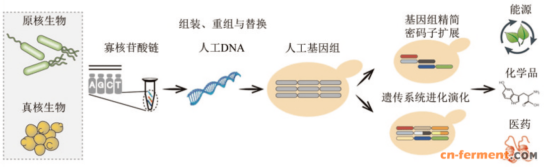 2010年,Synthia细胞的自我复制标志着人工合成基因组实现了对生命活动的调控,突破了化学物质和活性基因组的界限。人工基因组合成是关于理性设计和重新合成生命的研究,即在工程学思想的指导下,借助计算机模拟,模块化设计具有特定功能的人工基因组,利用DNA从头合成和模块化组装技术,将人工设计基因组构建出来,并使其实现预期功能。