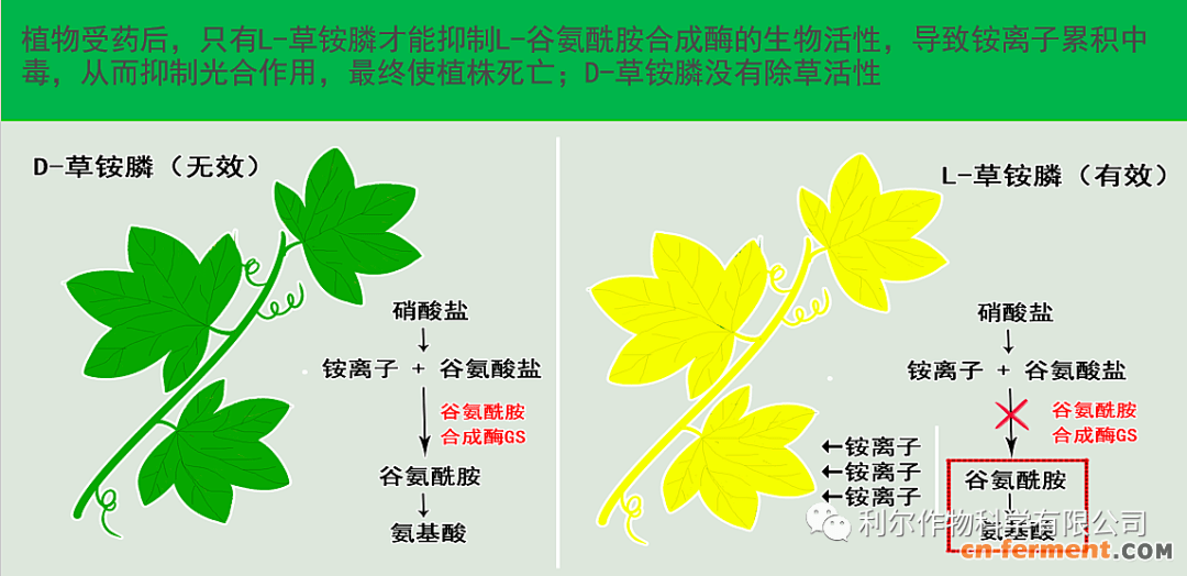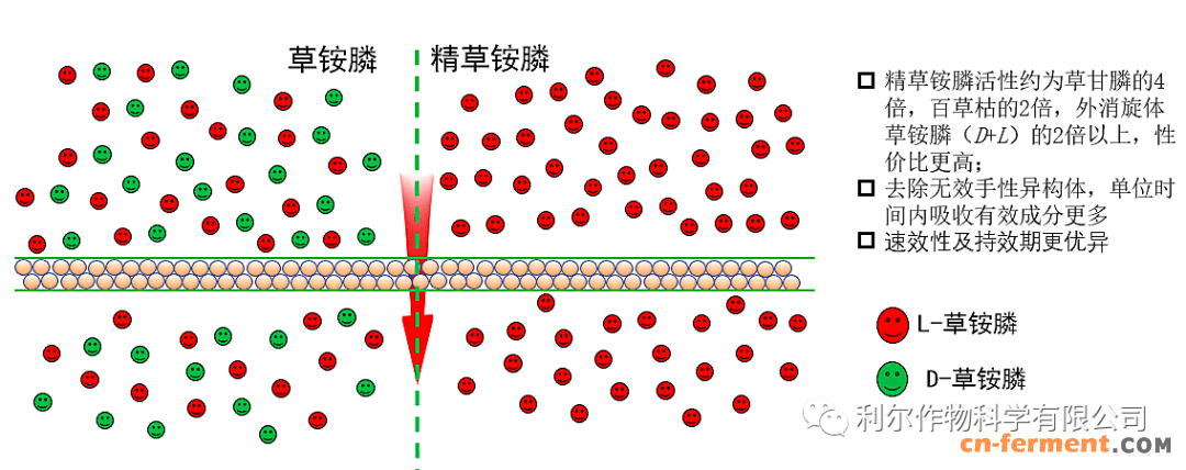 (1)与传统的草铵膦相比,精草铵膦活性更高,生物亲和性更优异,植物吸收利用更快速;