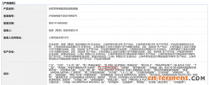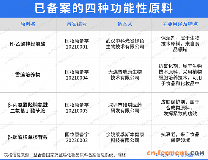 2021年8月24日,根据国家药监局化妆品原料备案信息系统显示,“雪莲培养物”和“β-丙氨酰羟脯氨酰二氨基丁酸苄胺”两个新原料备案成功。