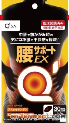 腰部支撑EX是一款专门针对腰部不适的机能表示食品,包含虾青素和荜拔来源胡椒碱,宣称的机能为“减轻日常生活中前倾时产生的腰部不适感”。