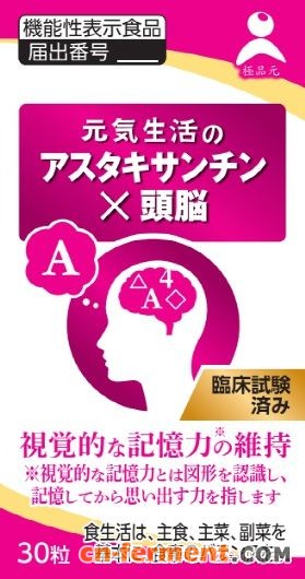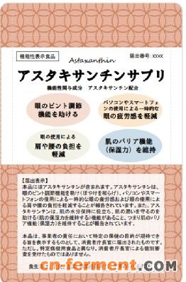 日本市场推出的一款用于保护视力的虾青素机能表示食品,宣称的功能为“改善视力模糊”和“减轻长时间使用电子产品引起的视疲劳。