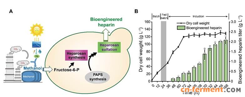 图3 工程化毕赤酵母从甲醇中生产生物工程肝素