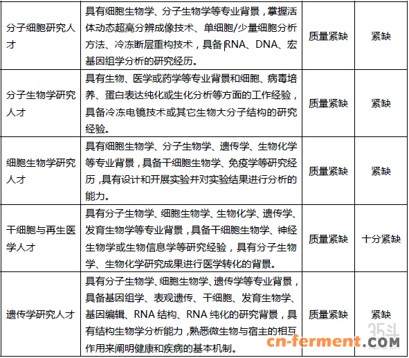 图:上海市紧缺生命科学类部分人才需求一览,图片来源:上观新闻