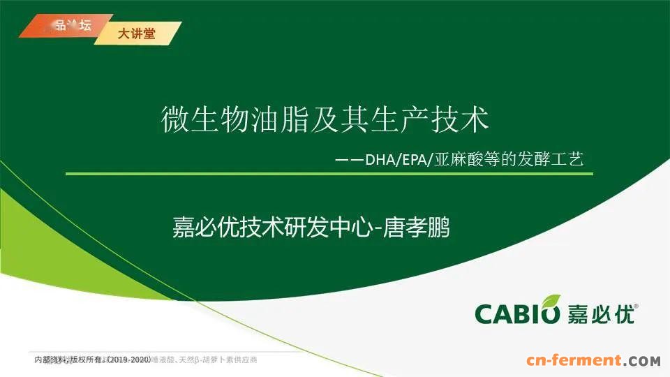 本期课程:《DHA/EPA/亚麻酸等的发酵工艺》