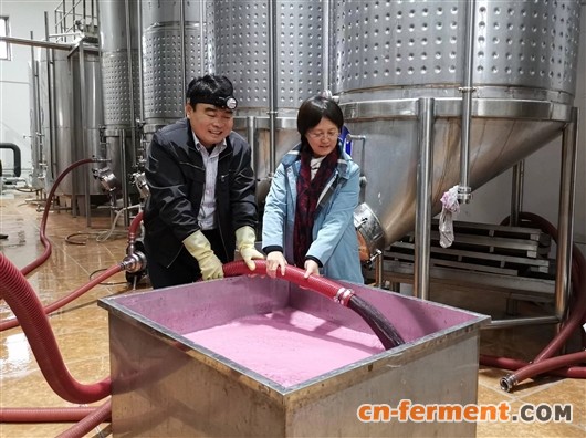 刘延琳(右)团队研发的本土酵母在禹皇酒庄近千家企业生产应用。 西北农林科技大学供图