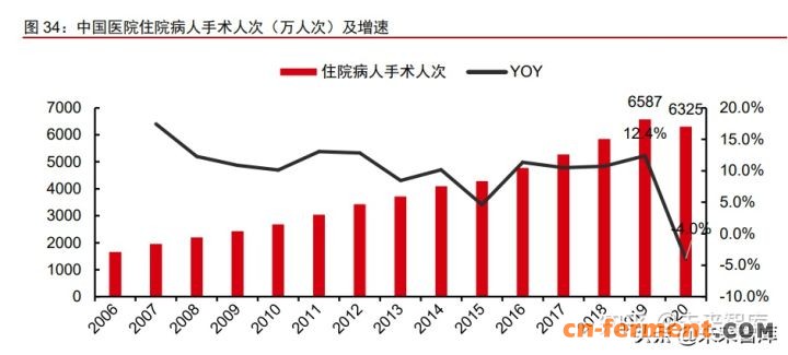 我国医院住院病人手术人次稳步增长,2020 年受疫情影响手术人次首次出现下滑, 2019 年我国医院住院病人手术人次达 6587 万人次,同比+12.4%,增速创近五年新高, 手术人次的持续增加将提升市场对胶原蛋白海绵等止血材料的需求,未来胶原蛋白海绵 市场规模有望得到逐步扩大。