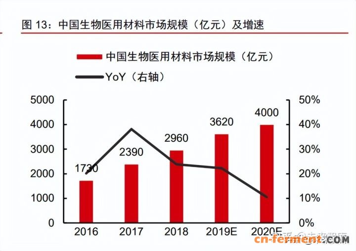 随着行业技术创新和人均可支配收入提升,我国生物医用材料市场规模近五年年均 复合增速超过 20%。根据国家统计局数据,2020 年中国城镇居民人均医疗保健消费支出 达 2172 元,对应 2016-2020 年 CAGR +7.4%。赛瑞研究预测(转引自创尔生物招股书), 中国生物医用材料市场规模 2020 年达到 4000 亿元,2016-2020 年 CAGR +23.3%。